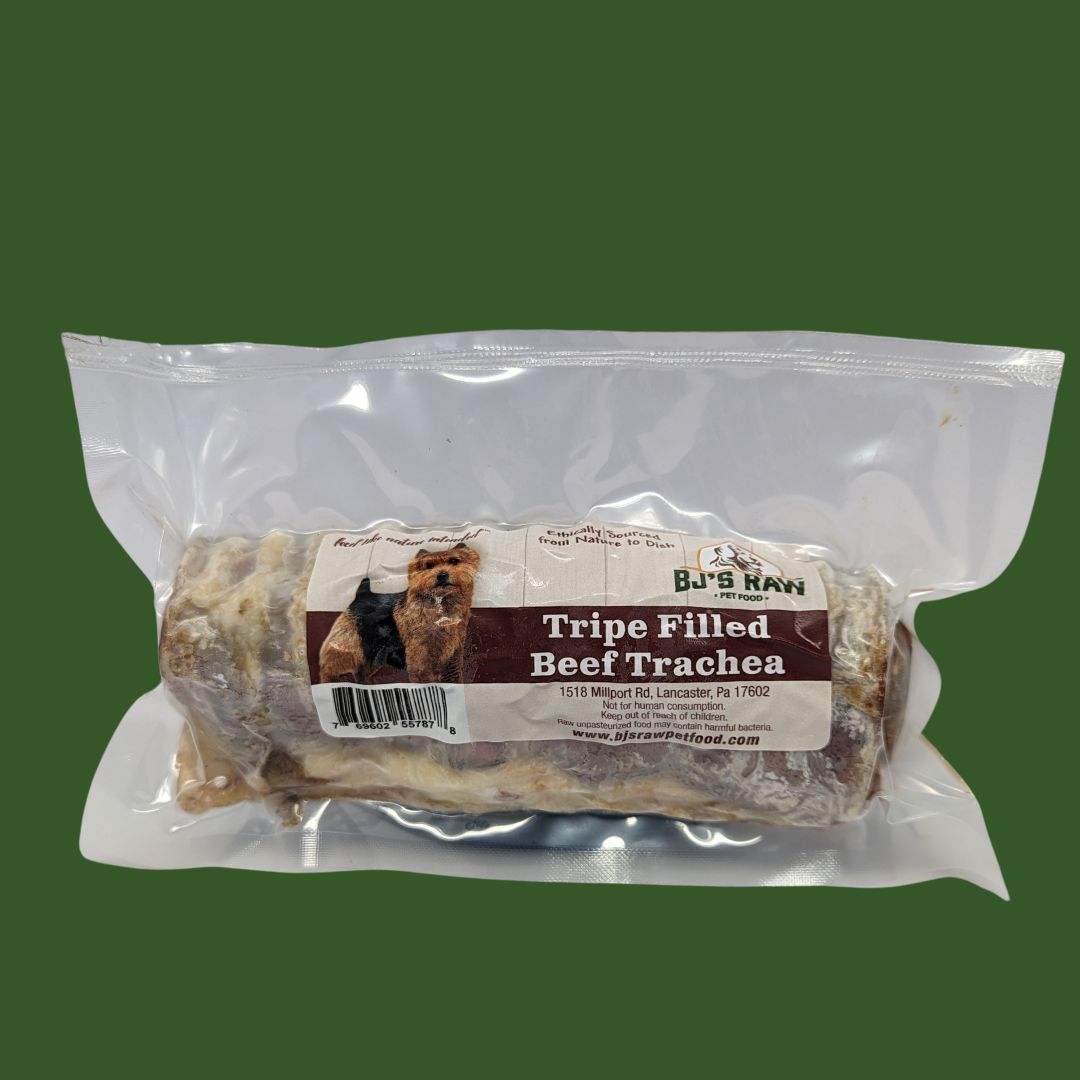 BJ’s Tripe-Filled Beef Tracheas promote healthy mental stimulation through chewing. Green Tripe contains natural enzymes that support digestion and gut health.
